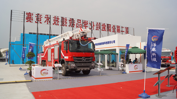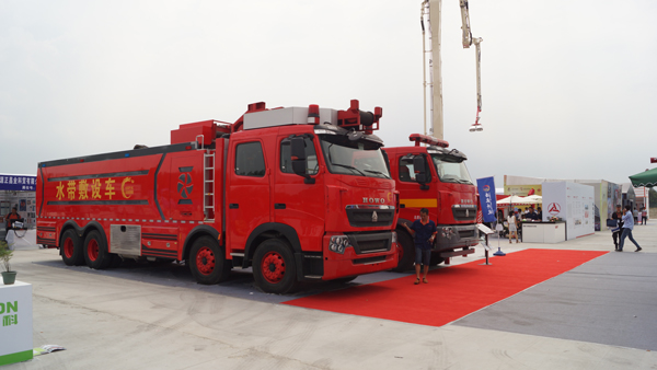 23日至25日比賽期間,新科技消防產(chǎn)品展示活動(dòng)中,我公司的32米云梯三相射流消防車、遠(yuǎn)程大功率供水系統(tǒng)、大功率消防拖車炮參加了展示,其中大功率消防拖車炮現(xiàn)場(chǎng)為參觀的領(lǐng)導(dǎo)做了射水表演。