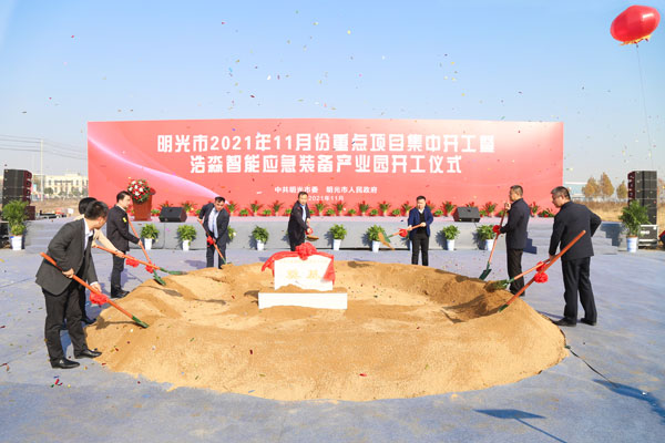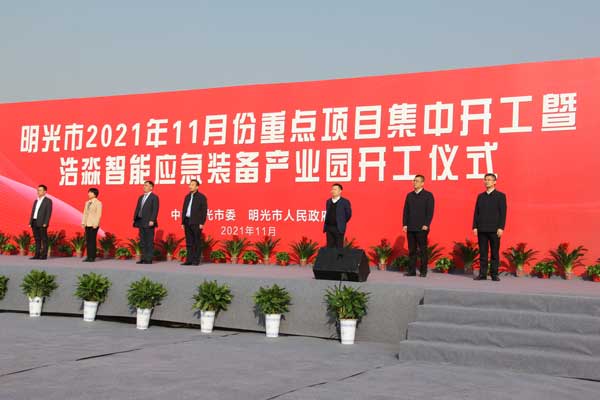 11月26日上午,我市隆重舉行11月份重點項目集中開工暨浩淼智能應急裝備產(chǎn)業(yè)園開工儀式。市委書記張秀山出席并宣布項目集中開工,市委副書記、市長張傳宗主持儀式。市領導曹迎春、張言平、張瑞、姚正玉,明光浩淼安防科技股份公司董事長倪軍、安徽碧橙材料科技有限公司總經(jīng)理沈立迎等參加開工儀式。
