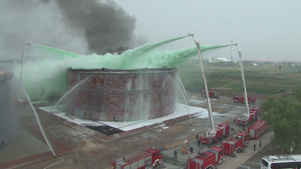 黑龍江省公安消防總隊大型油罐火災(zāi)撲救跨區(qū)域?qū)崙?zhàn)拉動演練