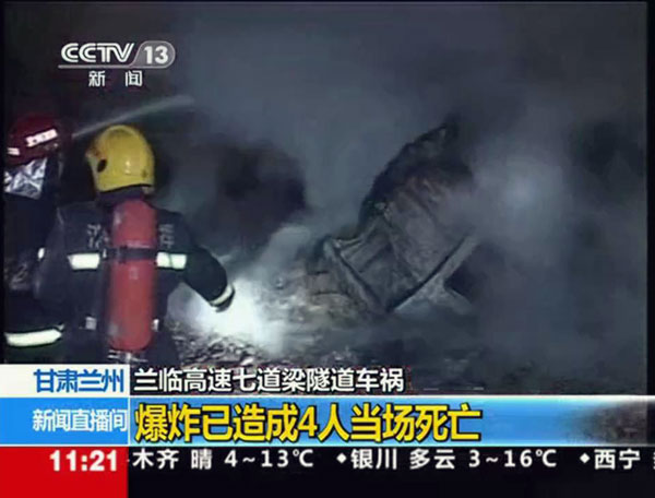 蘭州新七道梁3公里的隧道內(nèi),油罐車爆炸著火事故,蘭州石化支隊采用我公司生產(chǎn)的渦噴車用時20分鐘進行滅火救援。